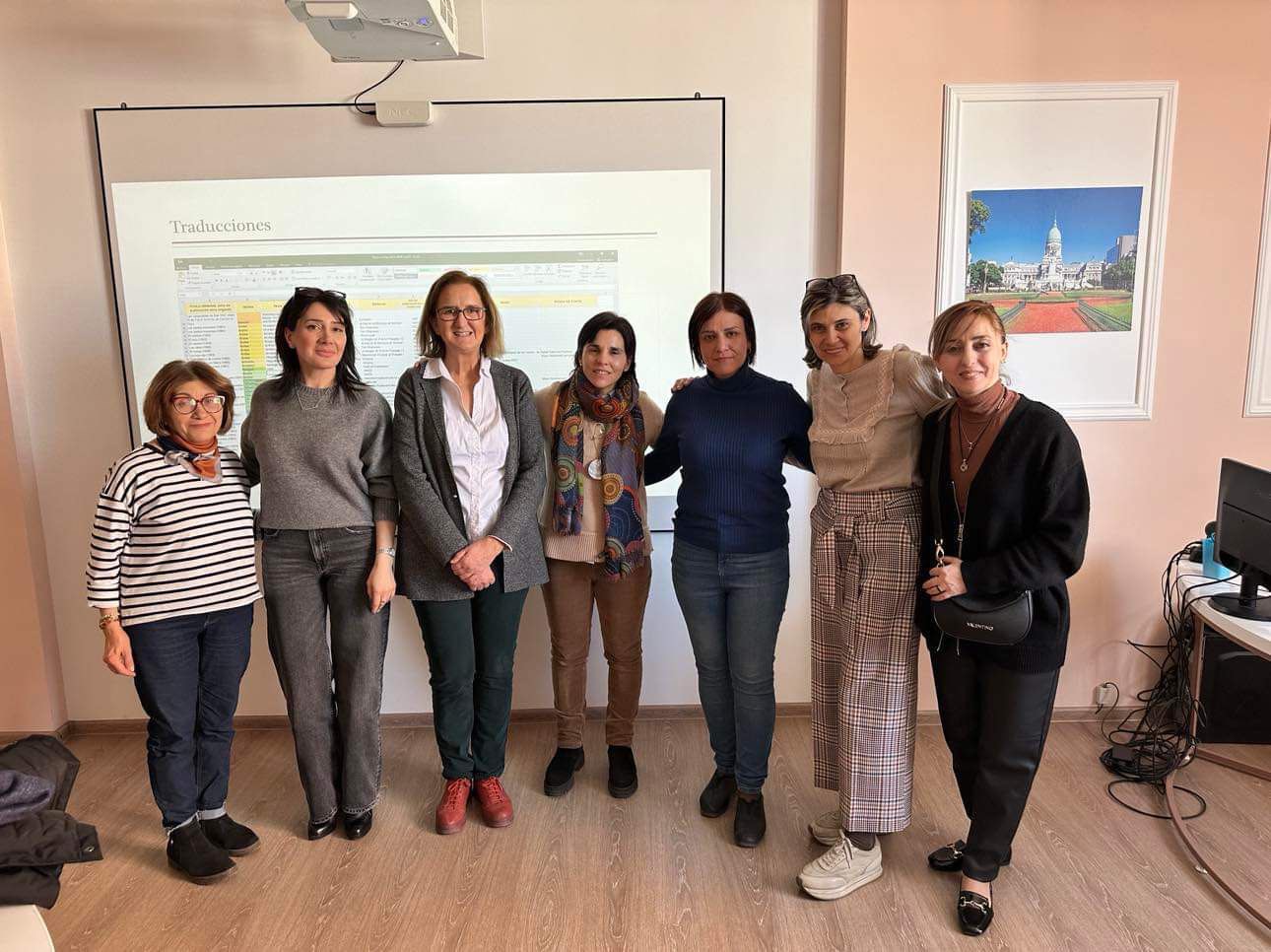 Las representantes de la UVa tuvieron ocasión de impartir docencia en las aulas de la universidad armenia. Una de las sesiones giró en torno a la vida y obra de Miguel Delibes y contó con la presencia de Ruzanna Arshak Petrosyan, traductora al armenio de la obra del autor vallisoletano. Además, la Oficina Nacional Erasmus+ de Armenia, que colabora estrechamente con el Servicio de Relaciones Internacionales de la Universidad de Valladolid, solicitó su colaboración para que impartieran una conferencia con el título "Nuevos métodos de enseñanza en la educación: afrontar los retos de la IA” al que asistieron más de 60 profesores y estudiantes de varias instituciones educativas de la ciudad de Ereván. Durante su intervención abordaron el impacto de la Inteligencia Artificial en el desarrollo del sistema educativo, explicaron las posibles ventajas del uso de las herramientas generadas con IA para emplearlas en el proceso de enseñanza, y ofrecieron algunas claves y consideraciones éticas para un uso responsable de las mismas.