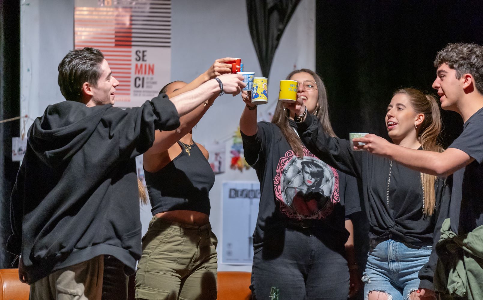 Las representaciones del sábado y ayer concluyeron con unas palabras dirigidas por los tutores encargados de la coordinación del grupo en las que mostraron su pesar y el apoyo, en nombre de toda la Residencia, a la familia de Miguel Li Fernández, residente fallecido el pasado jueves en la Facultad de Filosofía y Letras. Emotivo homenaje que fue replicado con los aplausos del público.
