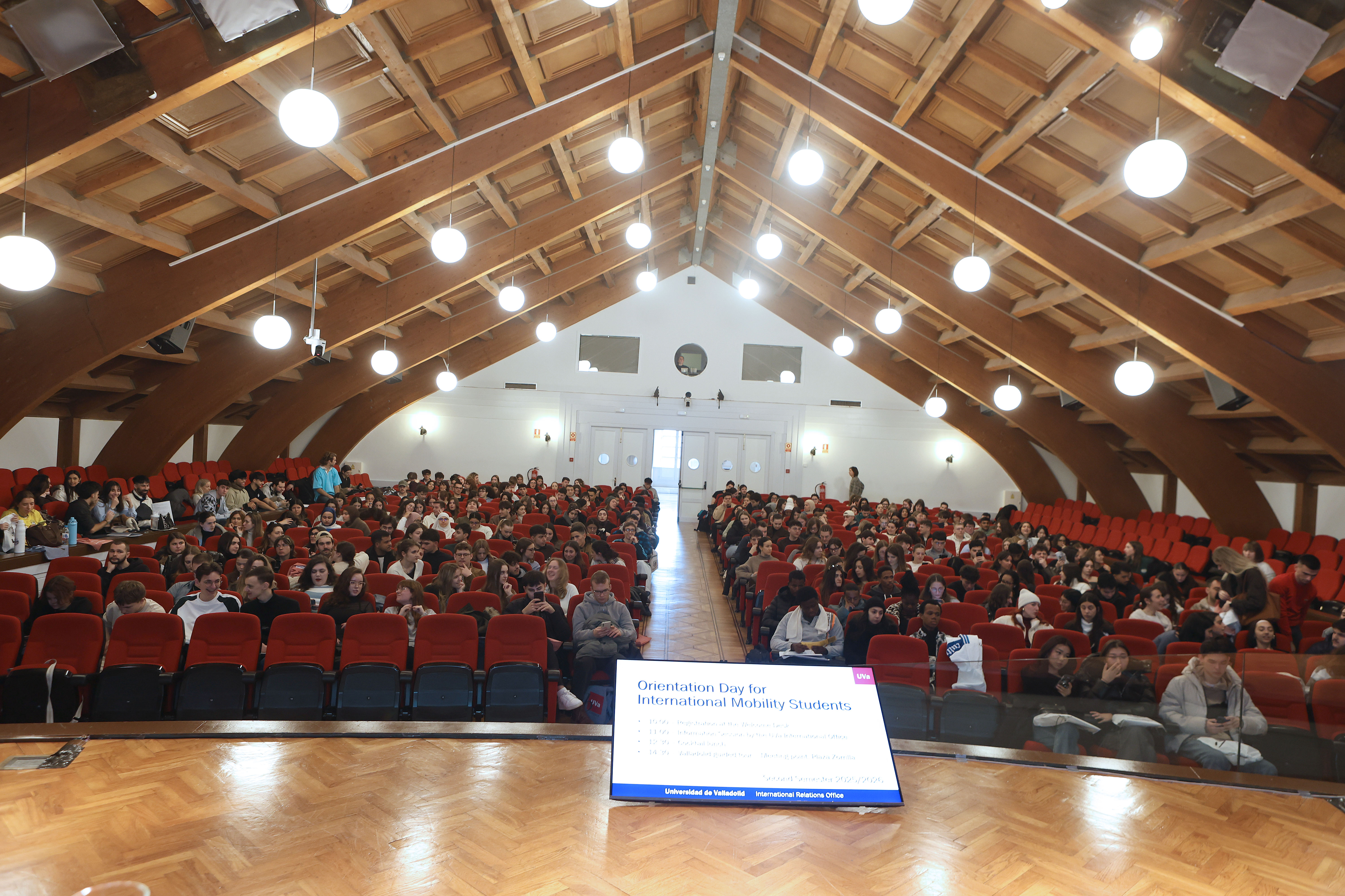 Como cada año al inicio del segundo cuatrimestre, la Universidad de Valladolid ha recibido a los estudiantes internacionales que estudiarán en sus aulas entre febrero y junio con un acto de bienvenida organizado para alumnos de los cuatro campus en el Paraninfo del Palacio de Congresos Conde Ansúrez. Este curso 2025/2026 18 personas cursarán sus estudios en el Campus La Yutera de Palencia, 13 lo harán en el Campus Duques de Soria, 4 en el Campus María Zambrano de Segovia y 328 en el Campus de Valladolid.